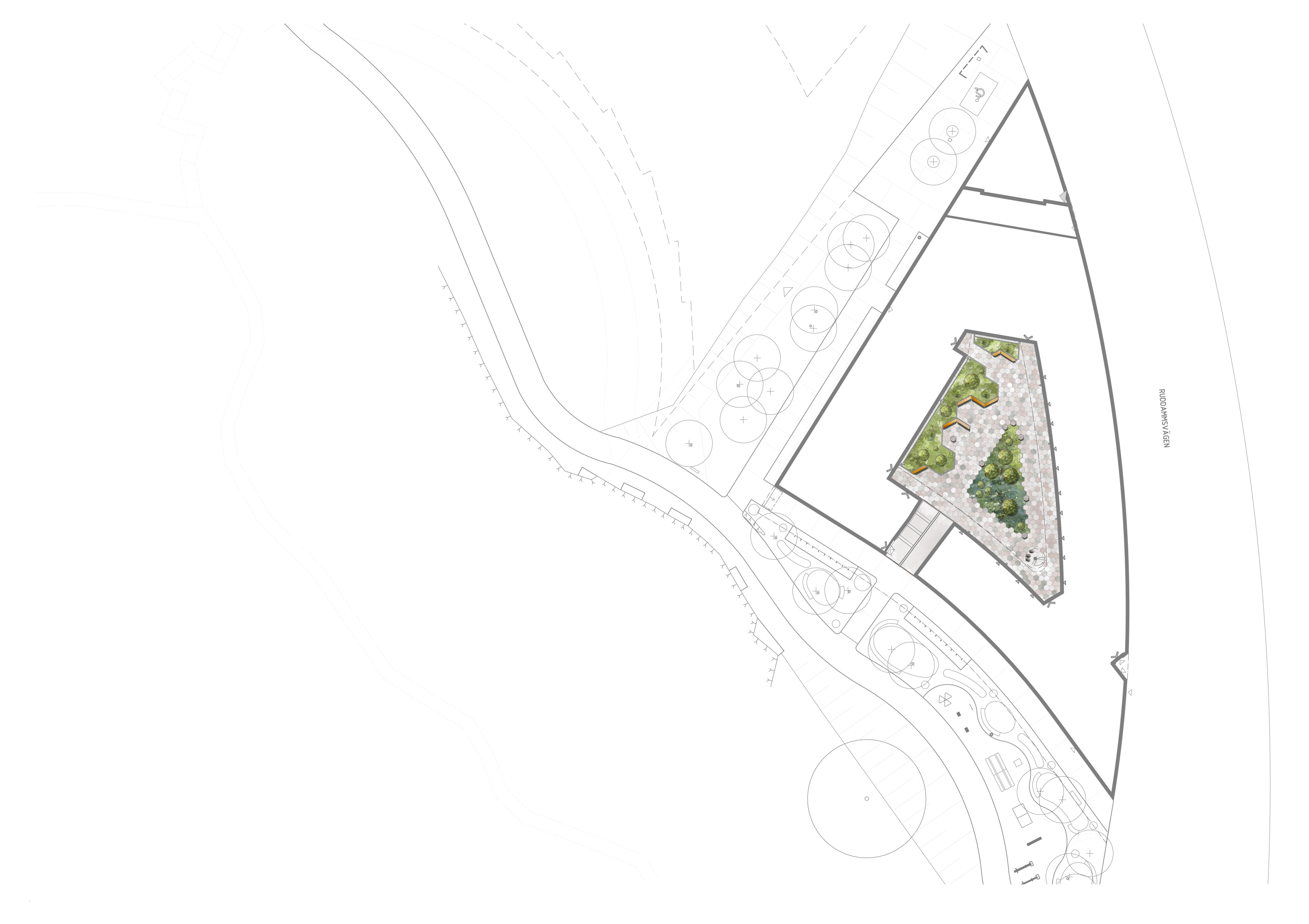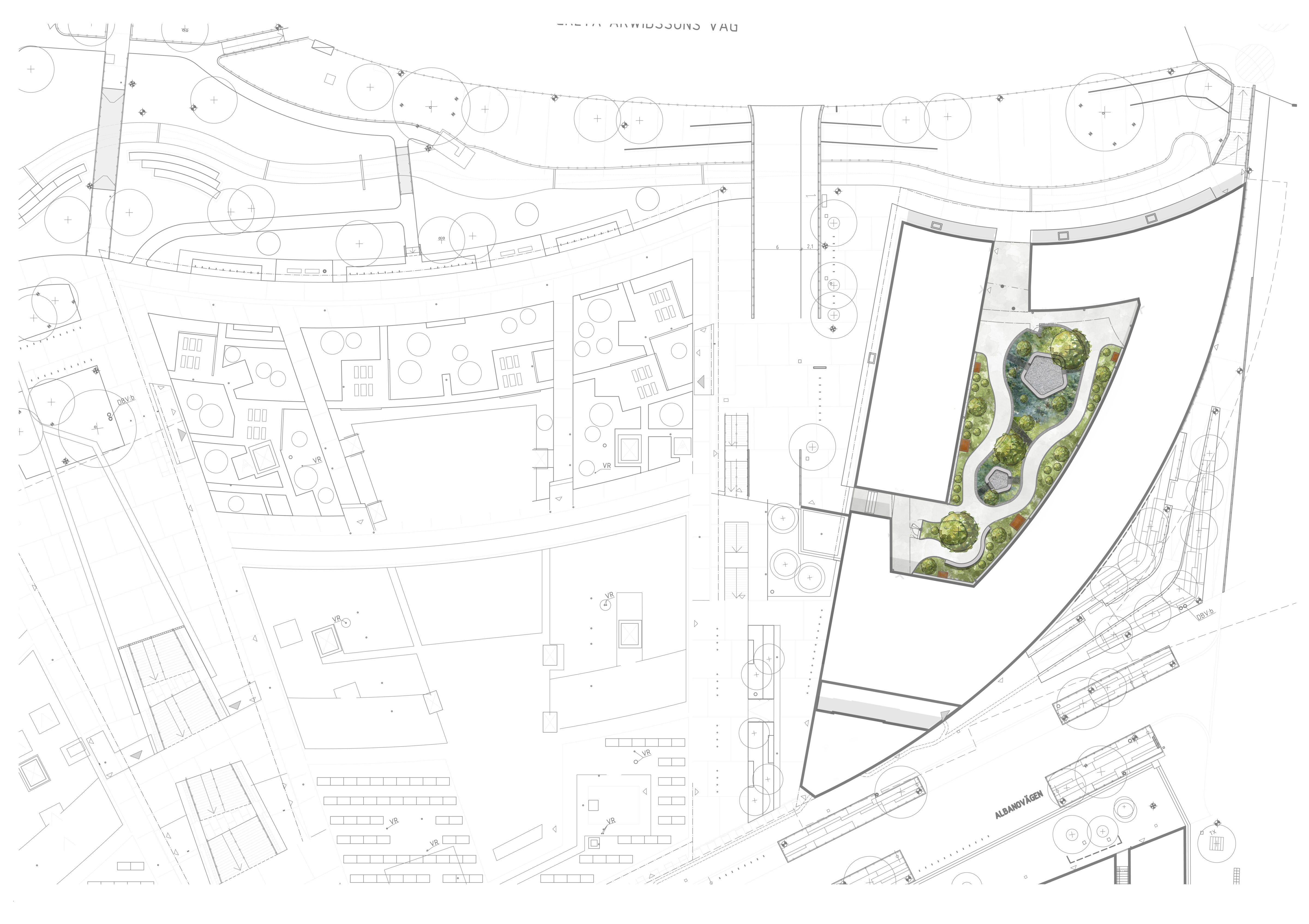 Albano ligger strategiskt mellan Stockholms universitet, KI och KTH och är en central punkt i den framväxande Vetenskapsstaden. Eftersom området gränsar till Nationalstadsparken har vårt fokus varit att bevara och förstärka de ekologiska sambanden. Vi har velat skapa en miljö som känns som en naturlig förlängning av parken, samtidigt som den klarar det höga trycket från tusentals studenter.
