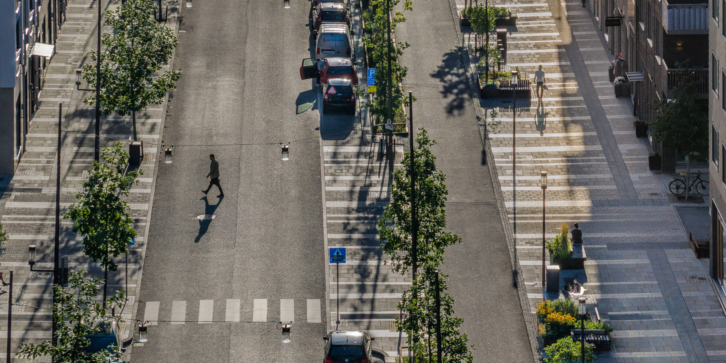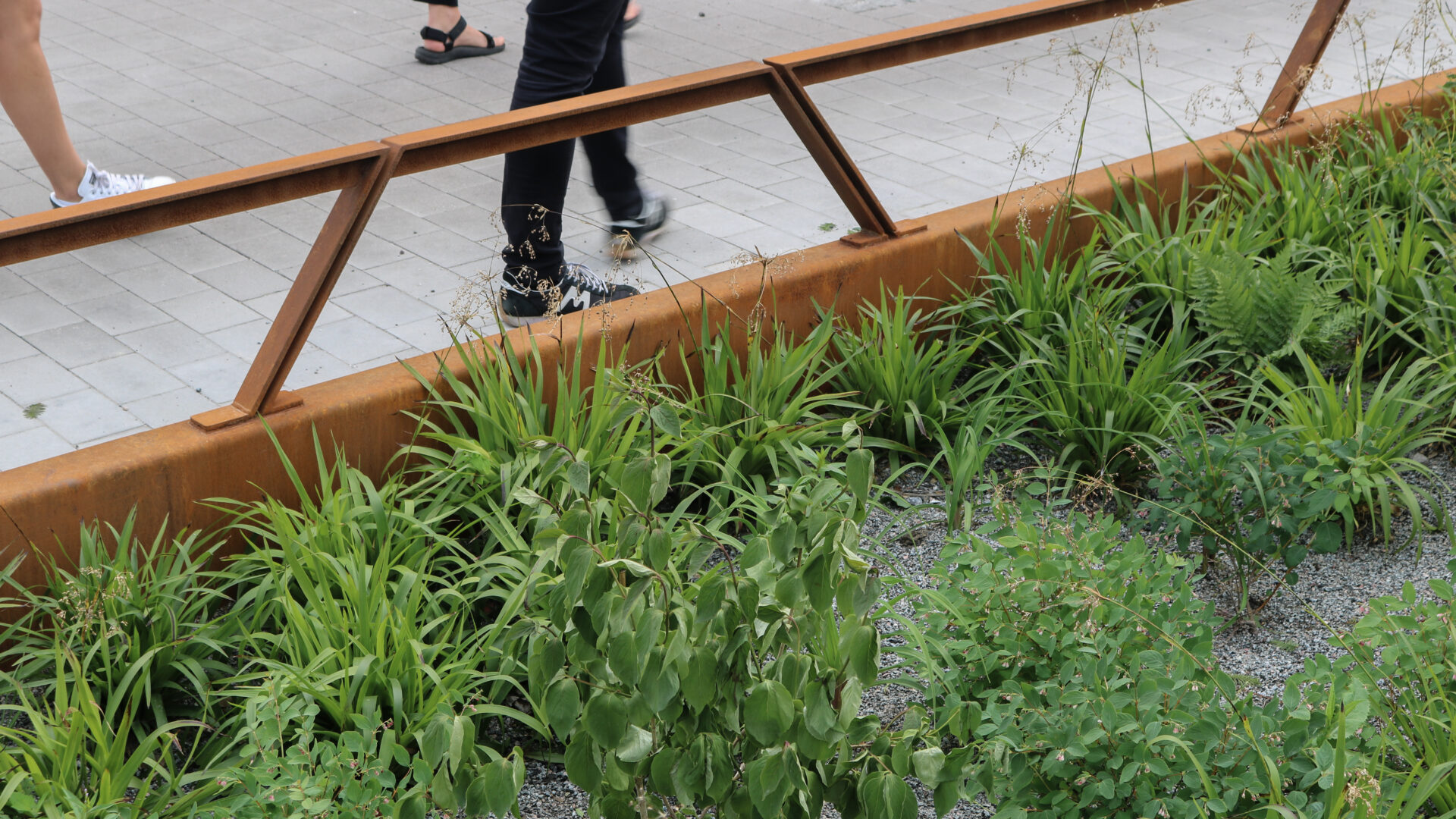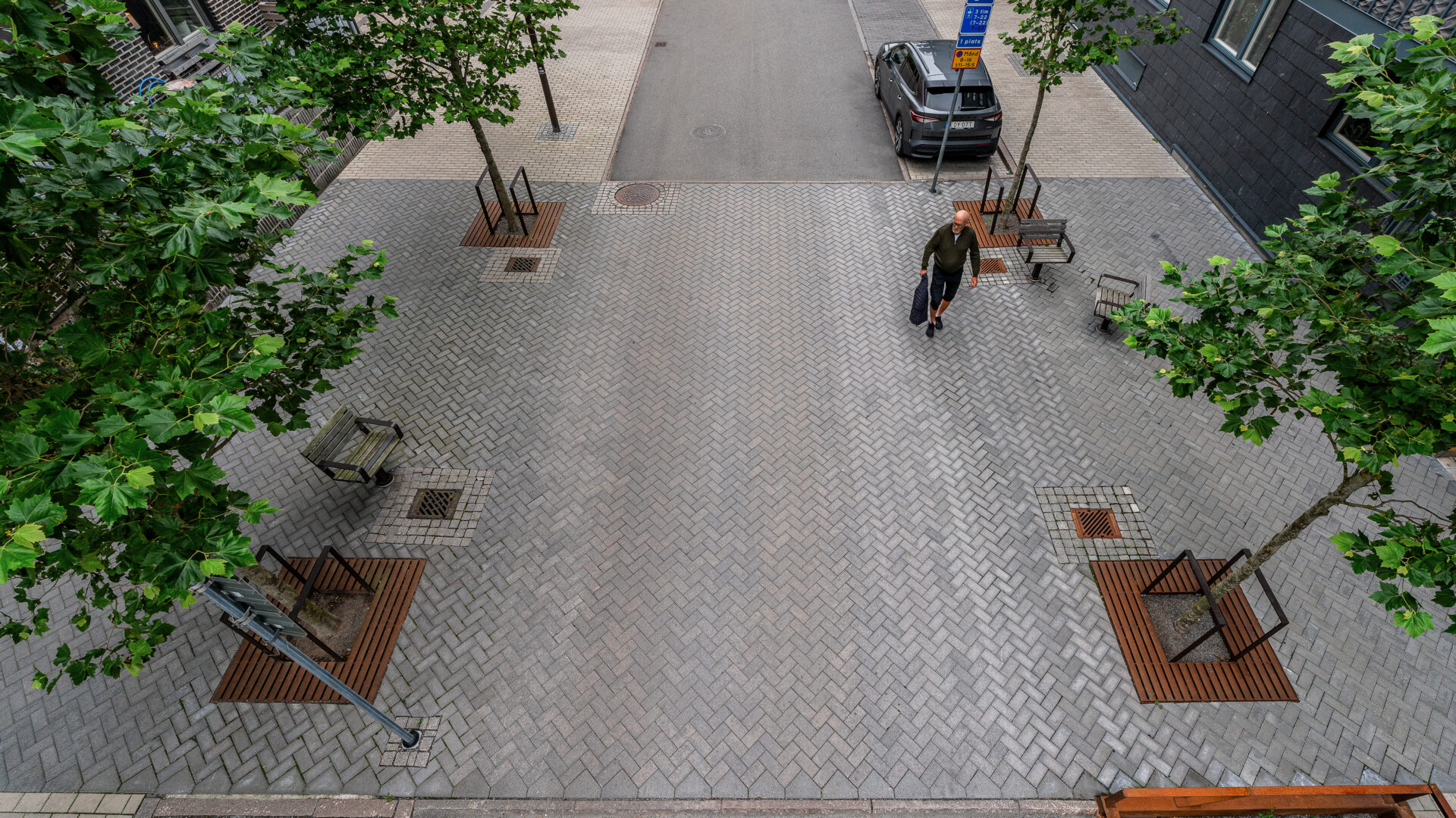 Stadsdelen prioriterar gående och cyklister, vilket genomsyrar gaturummens utformning. Grönytorna bidrar till att skapa skyddade, bilfria ytor för rörelse och innehåller ombonade ytor för vistelse och möten i vardagen. Gatorna präglas av omsorgsfullt utformade detaljer och materialval och innehåller flera egenritade möbler.