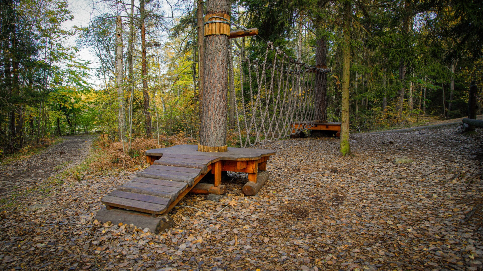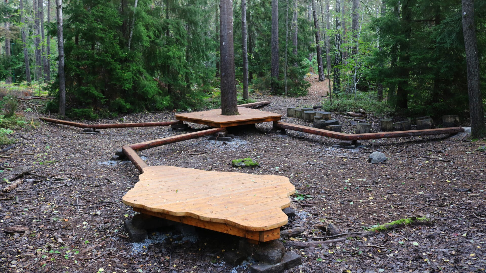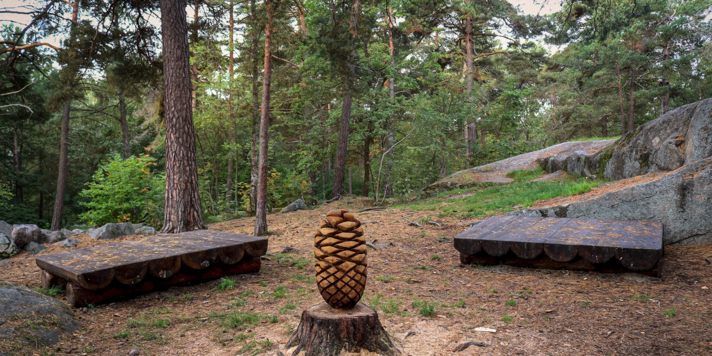 I Igelbäckens naturreservat har vi gestaltat Kottespåret, 14 stationer som utmanar barn fysiskt och väcker nyfikenhet på naturen. Genom att använda material från gallring på plats och skonsamma förankringsmetoder skapades en anläggning som respekterar både fornlämningar och levande skog.